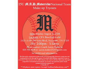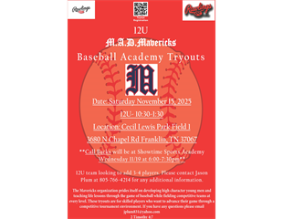 M.A.D. Mavericks is an organization whose mission is to educate young athletes in the game of baseball and prolong their career as far as possible by using the most advanced baseball instruction, strength and agility. We strive to use each day as an opportunity to “Make A Difference” (M.A.D.) in the lives of our athletes by holding our coaches and our athletes accountable for doing the right thing on and off the field. With an indoor training center, access to fields and instructors with college and pro experience, we have become one of the most dominant and competitive baseball academies in Tennessee, over the past 12 years.